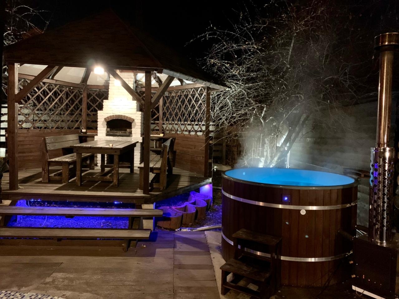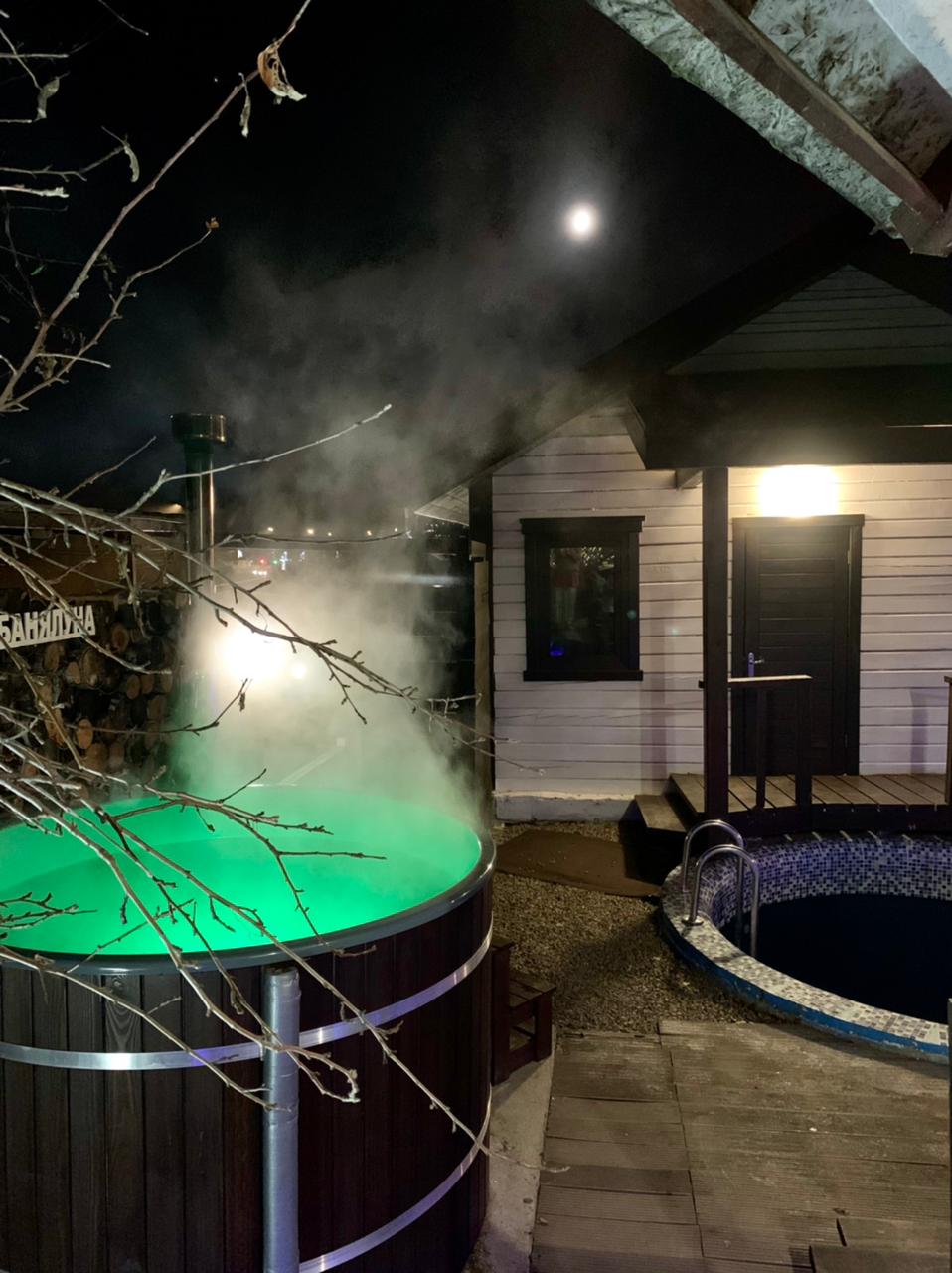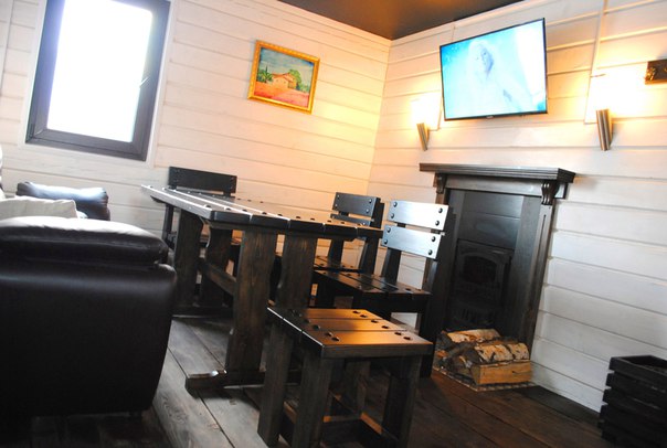 Баня для компании на 8 - 10 человек. Компанию можно увеличить до 10 - 12 человек с учетом размещения в беседке на улице (зависит от погоды). Мы топим свою баньку исключительно сухими березовыми дровами. Сердце бани - ее парная, в которой могут комфортно разместится одновременно 5 - 7 человек. В бане есть помывачная с обливным ведром. Есть душ и туалет. После банных процедур хорошо посидеть с чашкой чая за столом, расчитанным на 8 посадочных мест, в комнате отдыха с телевизором и камином.